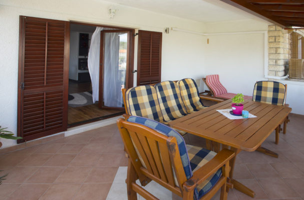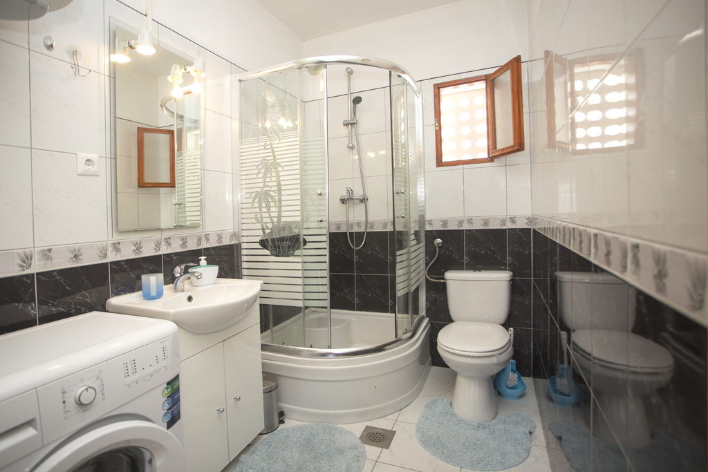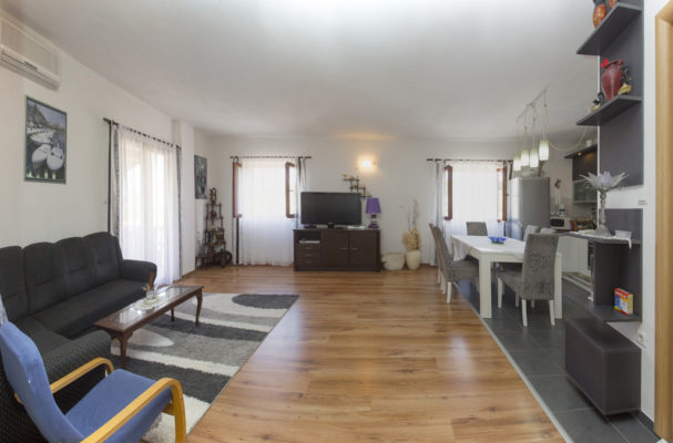 Apartment consists of two bedrooms. Each bedroom has two beds, bathroom, toilet, kitchen, dining room and living room with two extra beds available. They have 80 m2 plus terrace of 20 m2 with marvelous view to the sea and a barbecue. Apartmment have free private parking place …